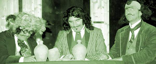 maschere da costumi ed acconciature caricaturali, in una soluzione che