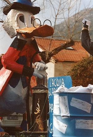 Domenica 9 febbraio, Il Baule apre la sfilata dei carri, mentre le "ballerine brasiliane D.O.S." (Di Origine Setina) animano la festa lungo il viale della stazione ferroviaria. Seguono, in automobile, Minnie e Topolino che portano a spasso per il borgo Pluto. Tutta festa, colori ed allegria. Ma non poteva mancare un pizzico di satira, e non poteva che essere Paperon De Paperoni a denunciare il "caro acqua"