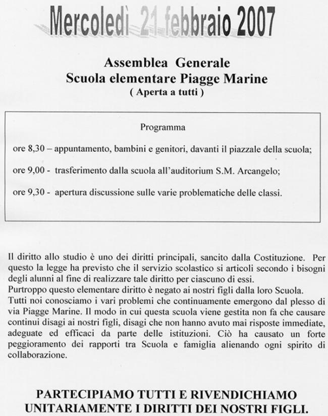 9,00 si terrà un incontro manifestazione sulla situazione della scuola