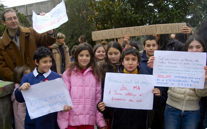 Genitori e alunni da Falco il “mediatore” Lo avevano detto e lo hanno fatto. Ieri moltissimi genitori degli alunni del primo Circolo didattico di Sezze sono scesi in piazza per protestare contro i disservizi e le varie carenze che dall’inizio dell’anno scolastico attanagliano l’istituto di via Piagge Marine. La manifestazione è iniziata subito dopo il suono della campanella, all’orario di apertura dei cancelli. Con tanto di megafono, alunni e genitori della scuola elementare e materna hanno scioperato per dirigersi poi in piazza De Magistris. Un lungo corteo ha attraversato le stradine del centro storico della città ed è salito in Municipio per trovare nel commissario prefettizio Leopoldo Falco un interlocutore. Una delegazione dei genitori è stata ricevuta dal dirigente governativo, dal responsabile dei servizi locali Piero Formicuccia e dal comandante della Polizia Municipale Lidano Caldarozzi. Il commissario ha ascoltato le istanze dei genitori e degli alunni del circolo diretto dalla professoressa Magnarelli. Si è trattato di un breve ma significativo incontro, alla fine del quale il commissario Falco si è dichiarato disponibile ad affrontare le diverse problematiche e a fare da mediatore con la preside dell’istituto. Al centro delle lamentele la carenza di personale docente e non; problemi strutturali della scuola e quindi della sicurezza dello stesso, e la mancata applicazione dell’offerta formativa (Pof). I genitori sono ricorsi al commissario Falco dopo aver – invano - cercato spiegazioni dalla dirigente scolastica. «La preside Magnarelli non ha accolto le nostre istanze – ci ha detto la delegazione dei genitori – è assente e non intende collaborare per affrontare le problematiche di sempre». Tra i motivi principali delle rimostranze c’è soprattutto quello dell’alternanza delle insegnanti (di matematica e di inglese), dell’assenza cronica del personale non docente, e dei disservizi legati alla pulizia dell’istituto. La voce di alunni e genitori ieri ha scosso le rigide mura del palazzo comunale al suon di: «Vogliamo armonia!! Vogliamo sicurezza!! Serve il dialogo!!». Il commissario Falco, disponibilissimo a collaborare e al dialogo ha detto alla folla accalcata in municipio che parlerà con la dirigente scolastica Magnarelli e se non avrà riscontri positivi cercherà altre strade. Nel corso della manifestazione sono state raccolte anche le firme dei genitori che intendono portate avanti la battaglia. articolo di Alessandro Mattei |