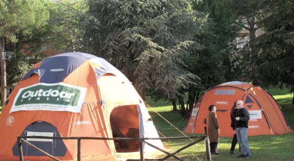 parco adiacente all'auditorium allestito un vero campo base
