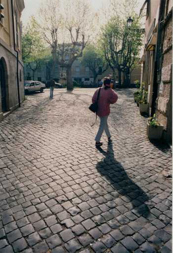 Selciato caratteristico di via Roma ripreso con un forte controluce frequente nelle mie foto (Primo Maggio 1992)