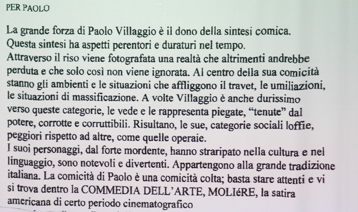 articolo scritto dal premio Nobel Dario Fo per Paolo Villaggio