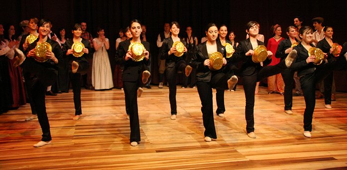 spettatore, anzi miscelando la recitazione con la danza e con il canto, lo