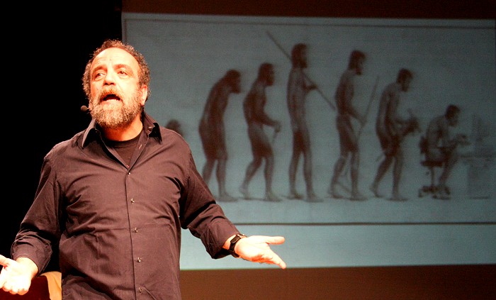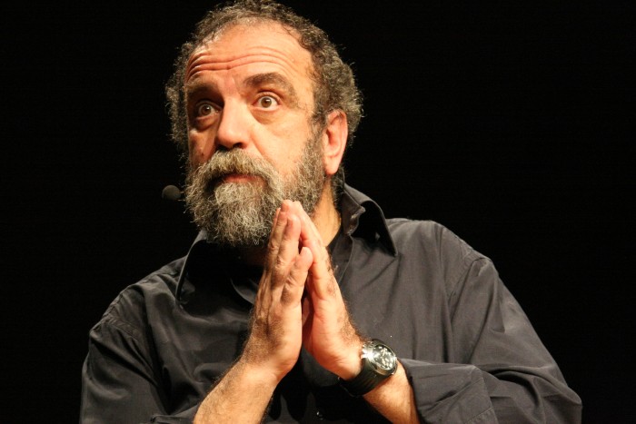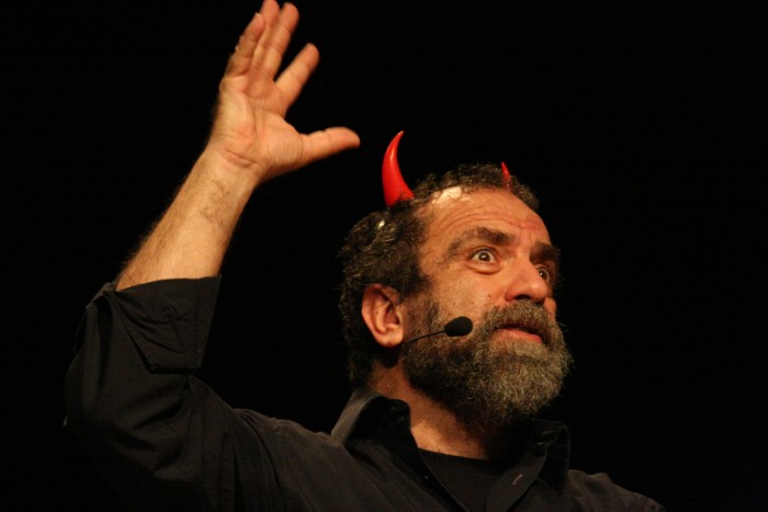 con la sua spietata comicità "sociale" con lo spettacolo