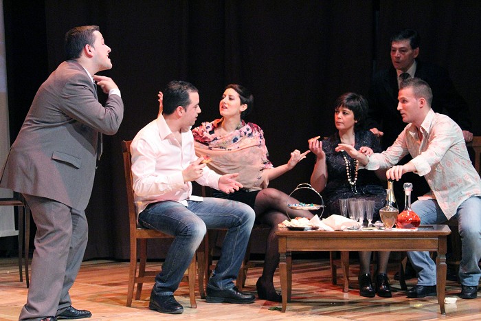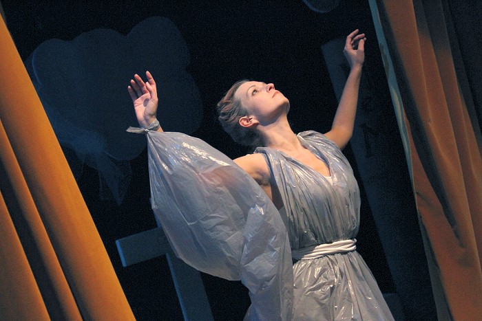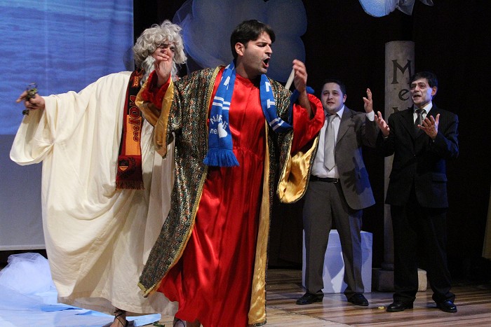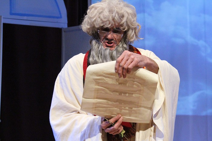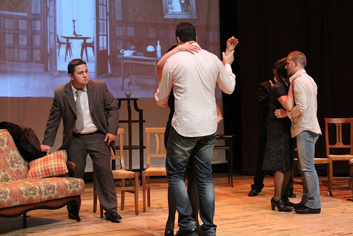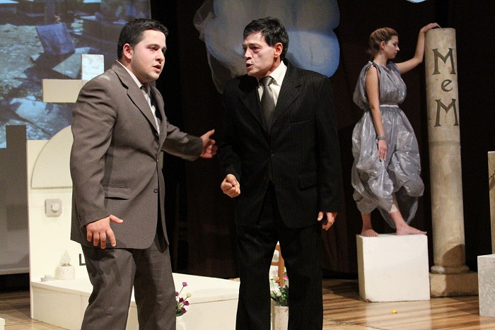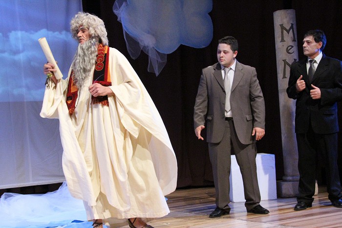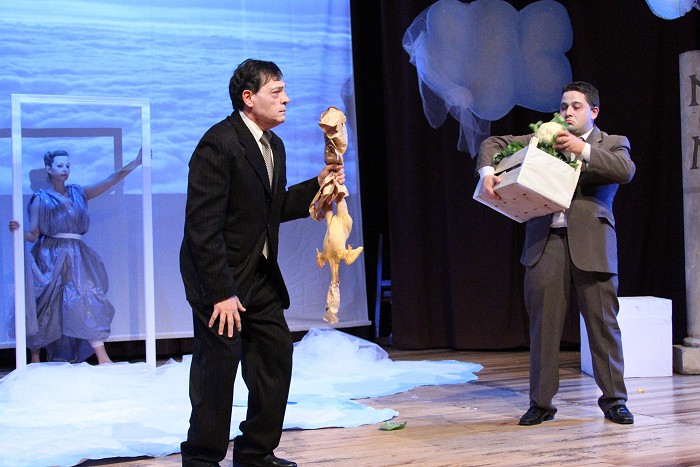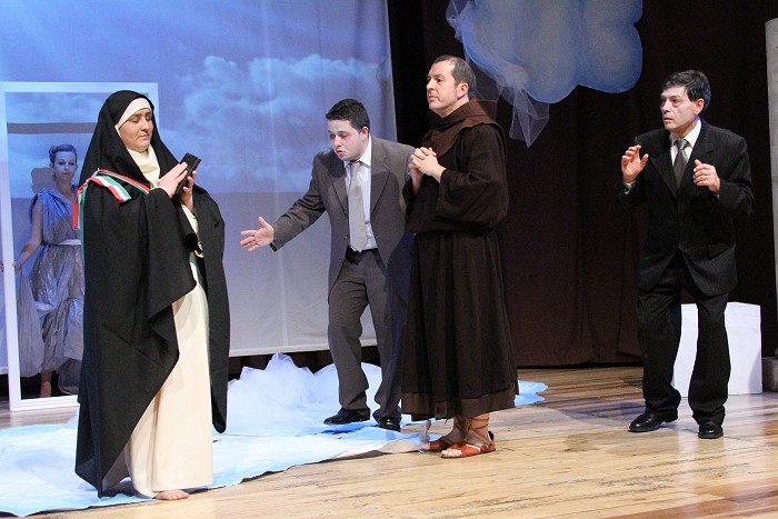 L'autore della commedia non mette "le antiche maschere" ai suoi personaggi che si presentano con il volto glabro, senza lacrime, ma con il solo scopo di divertire e magari far sorridere.