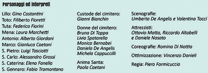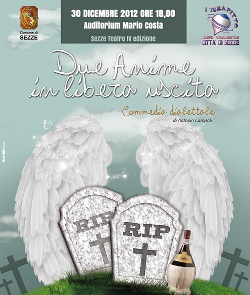 La commedia “Due anime in libera uscita” non è affatto un momento nostalgico di un passato che ormai non esiste più, non è un "laudator temporis acti", ma è un qualcosa che convive in perfetta simbiosi con la stessa ispirazione poetica, rigenerata e riportata in cielo dal dialetto che in questi due anni di attività la compagnia teatrale “I Turapitto”, sta cercando di rivalutare e non disperdere nella sua bellezza linguistica e semeiotica.