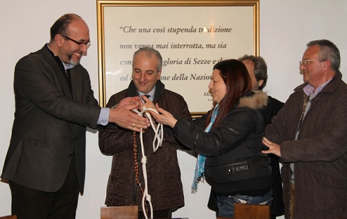 Il 25 marzo la sede della Passione di Cristo ha ospitato un importante incontro in cui il presidente della commissione turismo della Regione, Domenico Di Resta, ha consegnato al presidente Elio Magagnoli una targa ricordo dell'esperienza di Santiago. "All'Associazione della Passione di Cristo di Sezze per aver rappresentato la cultura e le tradizioni popolari della Regione Lazio partecipando da protagonisti alle celebrazioni dell'anno Giacobeo a Santiago di Compostela." Nella stessa serata Antonella Bruschi, presidente del Centro Studi San Carlo da Sezze, insieme al consigliere comunale Ernesto Di Pastina, al vice presidente Valter Marchetti ed al consigliere Lidano Pagani, hanno offerto al preseidente Elio Magagnoli il cordone ed il rosario per ornare la tunica di frate Carlo che tradizionalmente apre la processione del Venerdì Santo. Tutto questo a suggello di una rinnovata amicizia e collaborazione tra le due più importanti associazioni setine.
