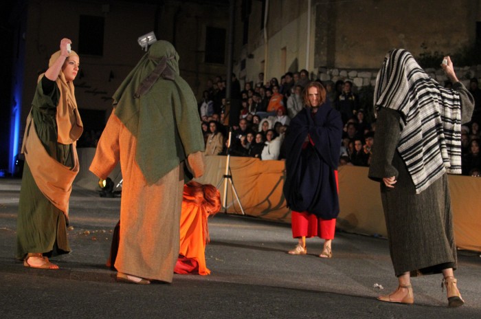 3 Allora gli scribi e i farisei gli condussero una donna còlta in adulterio; e, fattala stare in mezzo, 4 gli dissero: «Maestro, questa donna è stata còlta in flagrante adulterio. 5 Or Mosè, nella legge, ci ha comandato di lapidare tali donne; tu che ne dici?» 6 Dicevano questo per metterlo alla prova, per poterlo accusare. Ma Gesù, chinatosi, si mise a scrivere con il dito in terra. 7 E, siccome continuavano a interrogarlo, egli, alzato il capo, disse loro: «Chi di voi è senza peccato, scagli per primo la pietra contro di lei». 8 E, chinatosi di nuovo, scriveva in terra. 9 Essi, udito ciò, e accusati dalla loro coscienza, uscirono a uno a uno, cominciando dai più vecchi fino agli ultimi; e Gesù fu lasciato solo con la donna che stava là in mezzo. 10 Gesù, alzatosi e non vedendo altri che la donna, le disse: «Donna, dove sono quei tuoi accusatori? Nessuno ti ha condannata?» 11 Ella rispose: «Nessuno, Signore». E Gesù le disse: «Neppure io ti condanno; va' e non peccare più».]