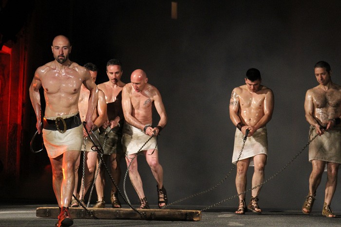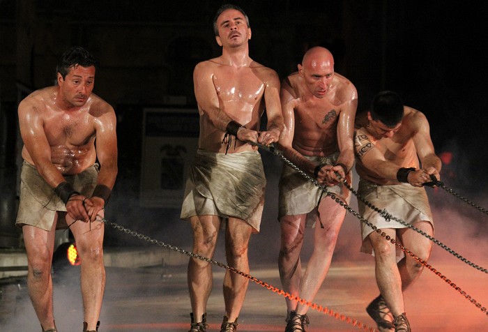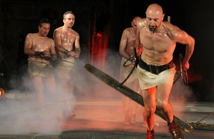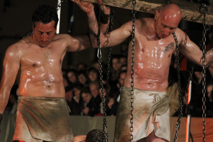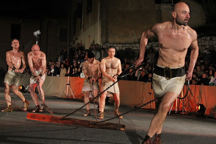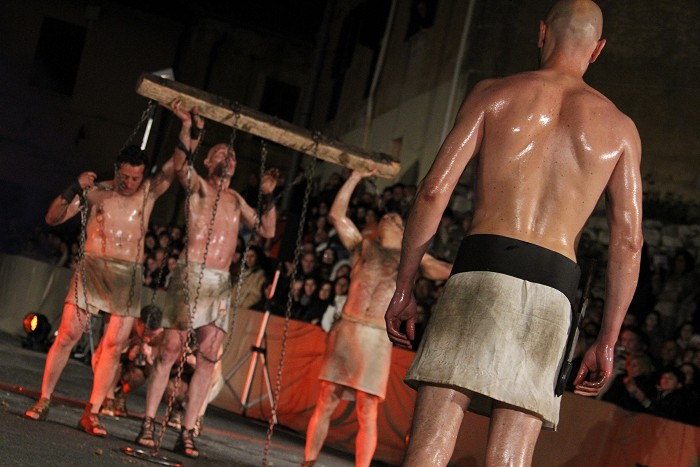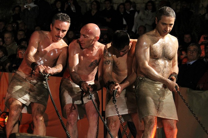 destinati a costruire la croce del Signore, sferzati e incatenati
