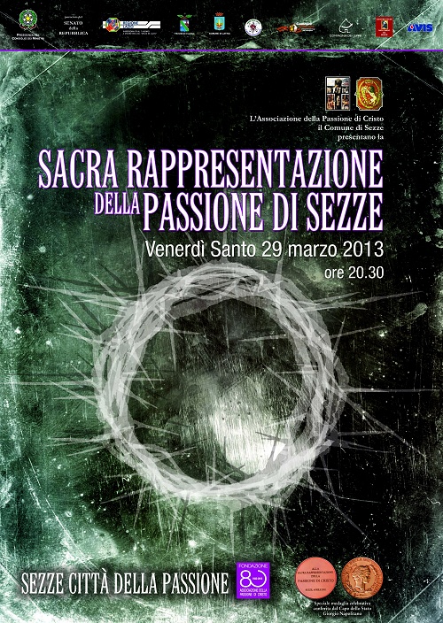 stimmatizzazione del grande Santo di Pietrelcina. «Voglio ringraziare tutti gli enti e le istituzioni che ci sono vicini – afferma il presidente dall’Associazione della Passione di Cristo di Sezze, Elio Magagnoli – ma soprattutto i settecento attori non professionisti che fanno di questo evento una grande manifestazione di popolo. Un grazie di cuore devo però rivolgerlo a tutti i nostri collaboratori, uno staff davvero eccezionale fatto di tanti giovani che affiancano il nostro consiglio direttivo nel complesso lavoro organizzativo. E’ da sottolineare che questo lavoro, oltre ai tanti riconoscimenti istituzionali, ha fatto ottenere alla Sacra Rappresentazione della Passione di Cristo di Sezze nell’Aprile del 2011 una prestigiosa medaglia celebrativa conferita dal Presidente della Repubblica Giorgio Napolitano». La Passione di Sezze sarà trasmessa in diretta televisiva sui canali del gruppo Lazio TV. Per ulteriori dettagli si può consultare il sito dell’Associazione della Passione di Cristo all’indirizzo www.passionedisezze.it