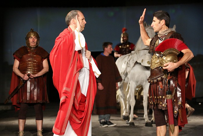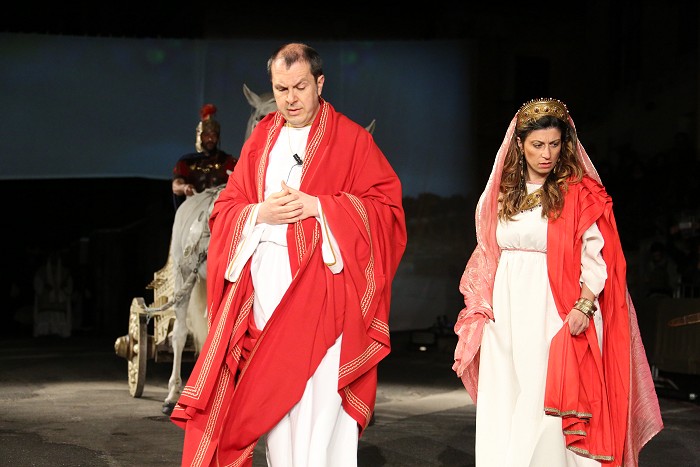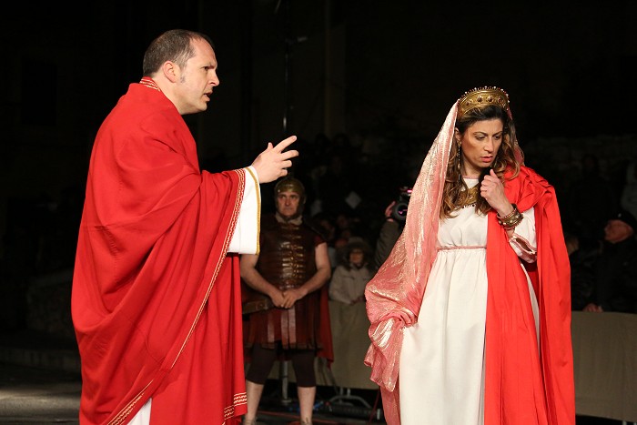 Pilato è ricordato universalmente per il giudizio che non è riuscito a dare su Gesù; in fondo c'è stata solo una sentenza, ma senza processo. La sentenza avrebbe potuto esser data dagli stessi ebrei, visto che si trattava di condannare un loro preteso Messia, e così avrebbe voluto Pilato senza essere lui coinvolto. Matteo descrive il suo "lavarsi le mani", a significare la sua estraneità (é anche "innocenza"? Mt.27,24). Matteo è l'unico che riferisce anche di un sogno che ha turbato la moglie di Pilato. Sappiamo che si chiamava Procula e che era figlia della terza moglie di Tiberio e forse per qualche tempo sua favorita. Molte leggende si accaniranno su lei. Qui ci colpisce lo stesso verbo che poi il Credo userà per Gesù, "ha sofferto" in sogno a causa di lui. |