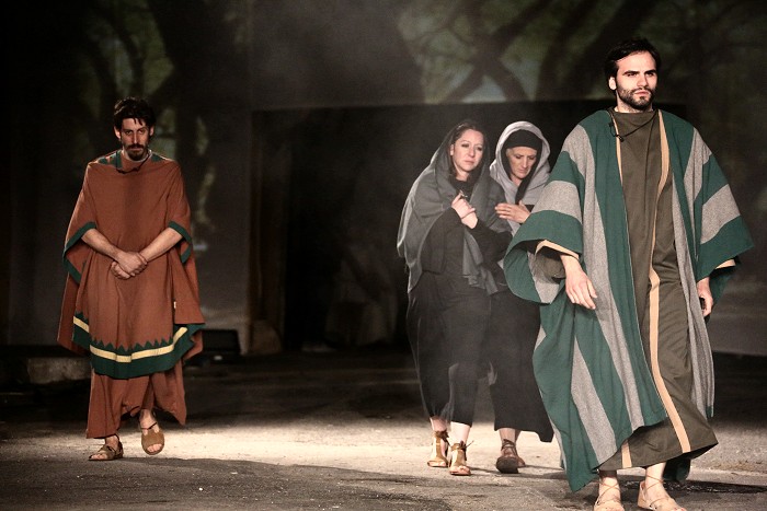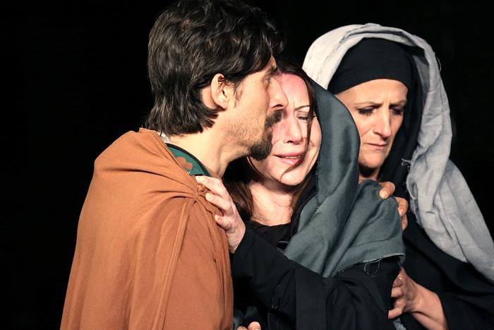 Giunse piangendo; e piangendo le andò incontro, ed entrambi, la vergine e Giovanni, si sedettero, piangendo insieme Gesù.
