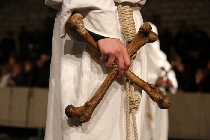 Durante le processioni e nelle altre azioni liturgiche i confratelli indossavano l’abito proprio della confraternita, costituito da un saio completamente nero, con cappuccio dello stesso colore; nelle processioni la confraternita era preceduta dalla propria croce e il priore recava in mano un bastone