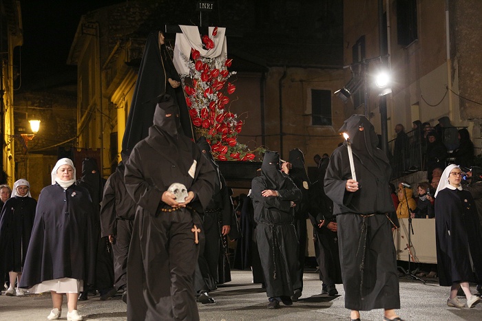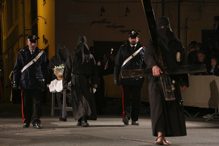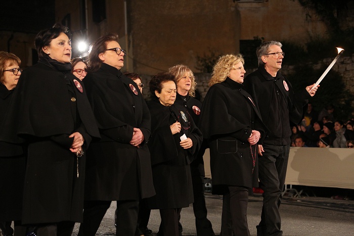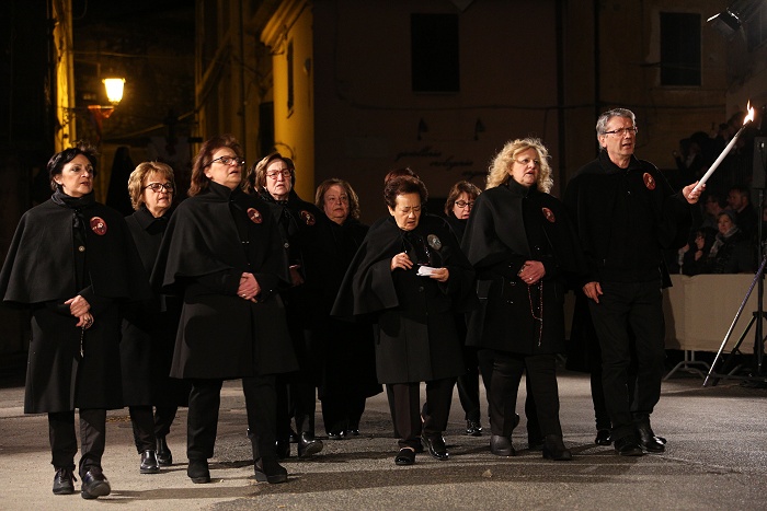 processione inizia con le Confraternite seguite dal Cristo morto e dalla Madonna dell’Addolorata cui fa da corona il canto delle pie donne è quella liturgica ed è la più antica.