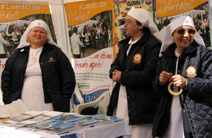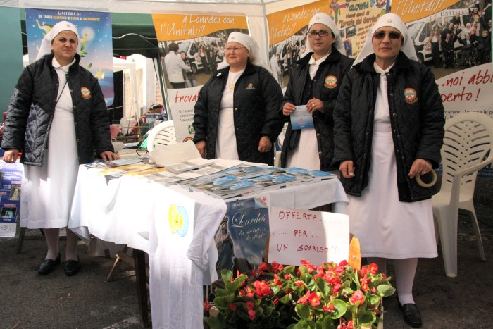 UNITALSI 2008 > Prima partecipazione alla Sagra per la sezione di Sezze Fondata nel 1903, l'UNITALSI (Unione Nazionale Italiana Trasporti Ammalati a Lourdes e Santuari Internazionali) è una Associazione che, attraverso l'opera di volontari, si propone di realizzare una crescita umana e cristiana dei propri aderenti e di promuovere un'azione di evangelizzazione e di apostolato verso e con gli ammalati e i disabili.