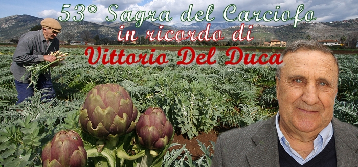 Alla Sagra del Carciofo si ricorda Vittorio Del Duca, scomparso il 13 febbraio 2024. Due i momenti all'interno della manifestazione dedicati all'importante figura di Vittorio: il Convegno della Coldiretti ed il Premio Vittorio Del Duca. > il secondo momento della giornata dedicato a Vittorio si tiene a Porta Pascibella alle ore 17,30 tra gli espositori di carciofi e gli stands della Coldiretti di cui Vittorio Del Duca era stato presidente della sezione locale. Le prime tre migliore creazioni artisticche eseguite con i carciofi durante la 53° edizione della Sagra si aggiudica il premio intitolato a Del Duca. La prima edizione del Premio Vittorio Del Duca con votazione popolare, presieduta dall'Onorevole Matteo Adinolfi, dall'Assessore Lola Fernandez e dal Consigliere Orlando Santoro si è conclusa nel seguente modo: 1 posto