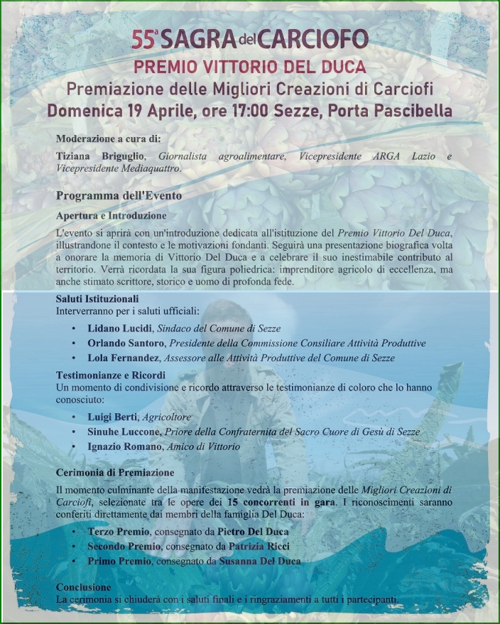Carciofo di Sezze, risultando vincitore del primo premio come miglior