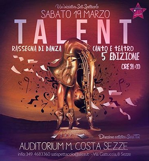 19 marzo 2016 Auditorium Mario Costa, ore 21,00 SATI presenta la 5a edizione di TALENT