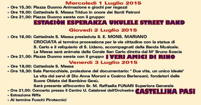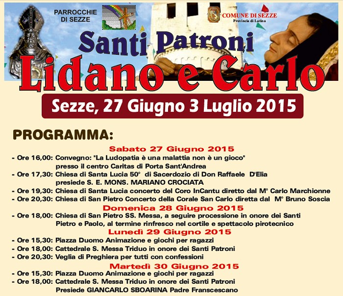 Programma dei festeggiamenti 2015 Sezze, 27 giugno - 3 luglio 2015 Sabato 27 giugno - 50° Anniversario di Sacerdozio di Don Raffaele D'Elia