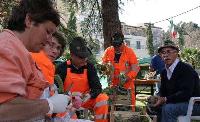 decisamente meno impegnativo il lavoro di quest'anno svolto dal gruppo di protezione civile, ma non certo per loro volontà. In effetti come avevamo previsto lo scorso anno le mura poligonali sono inagibili e allora gli Alpini puliscono ... i carciofi ! 1 e 2 aprile 2006: Ci saranno ancora carciofi il prossimo anno ?